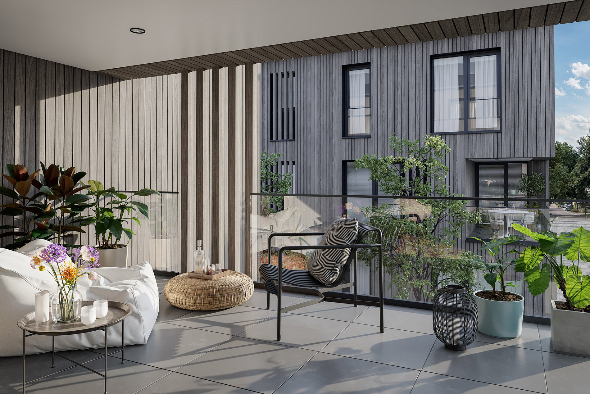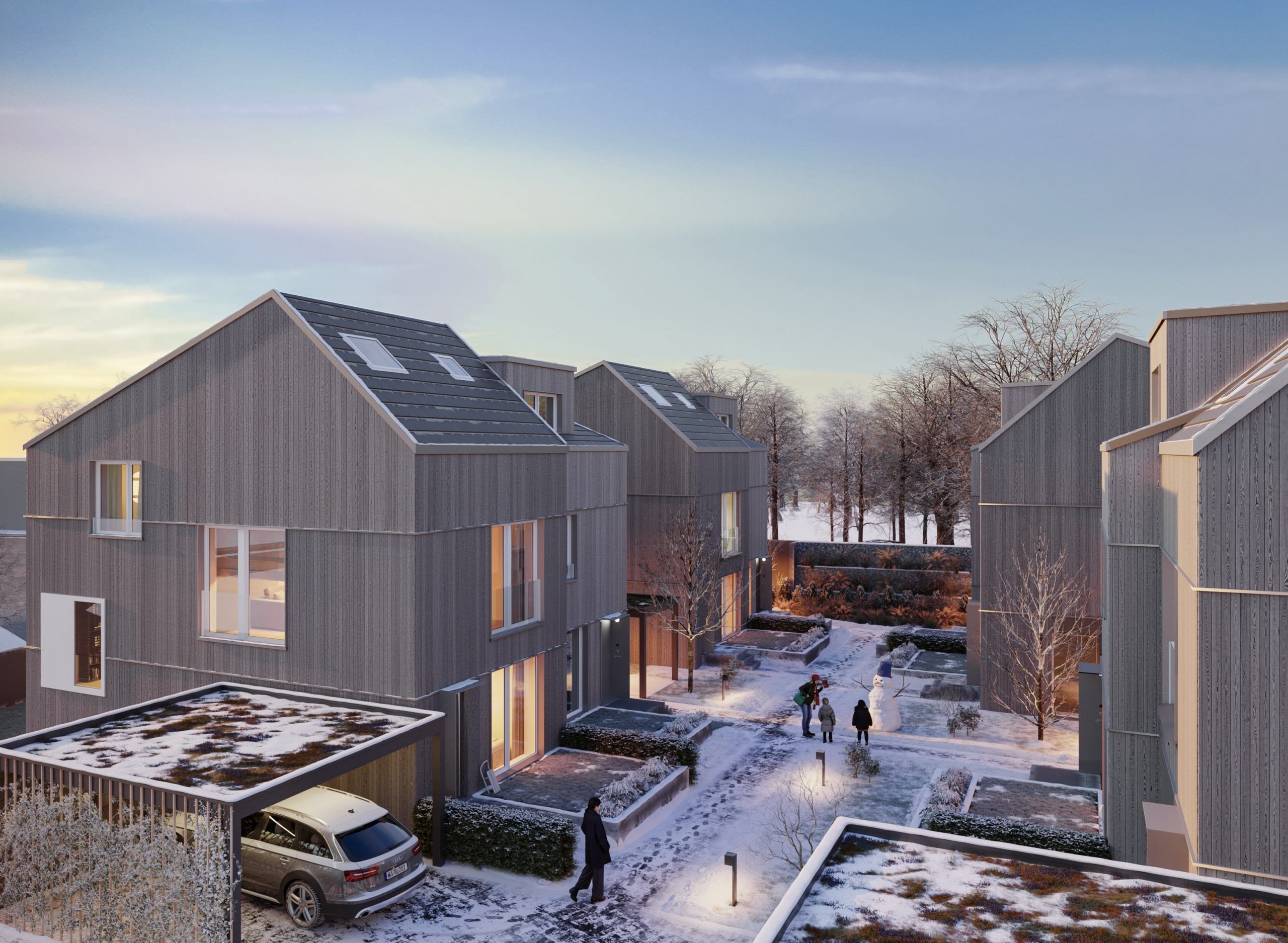 Die Wohnbebauung soll in nachhaltiger Holzbauweise errichtet werden, wobei das Material Holz auch in der Fassade zur Geltung kommt.