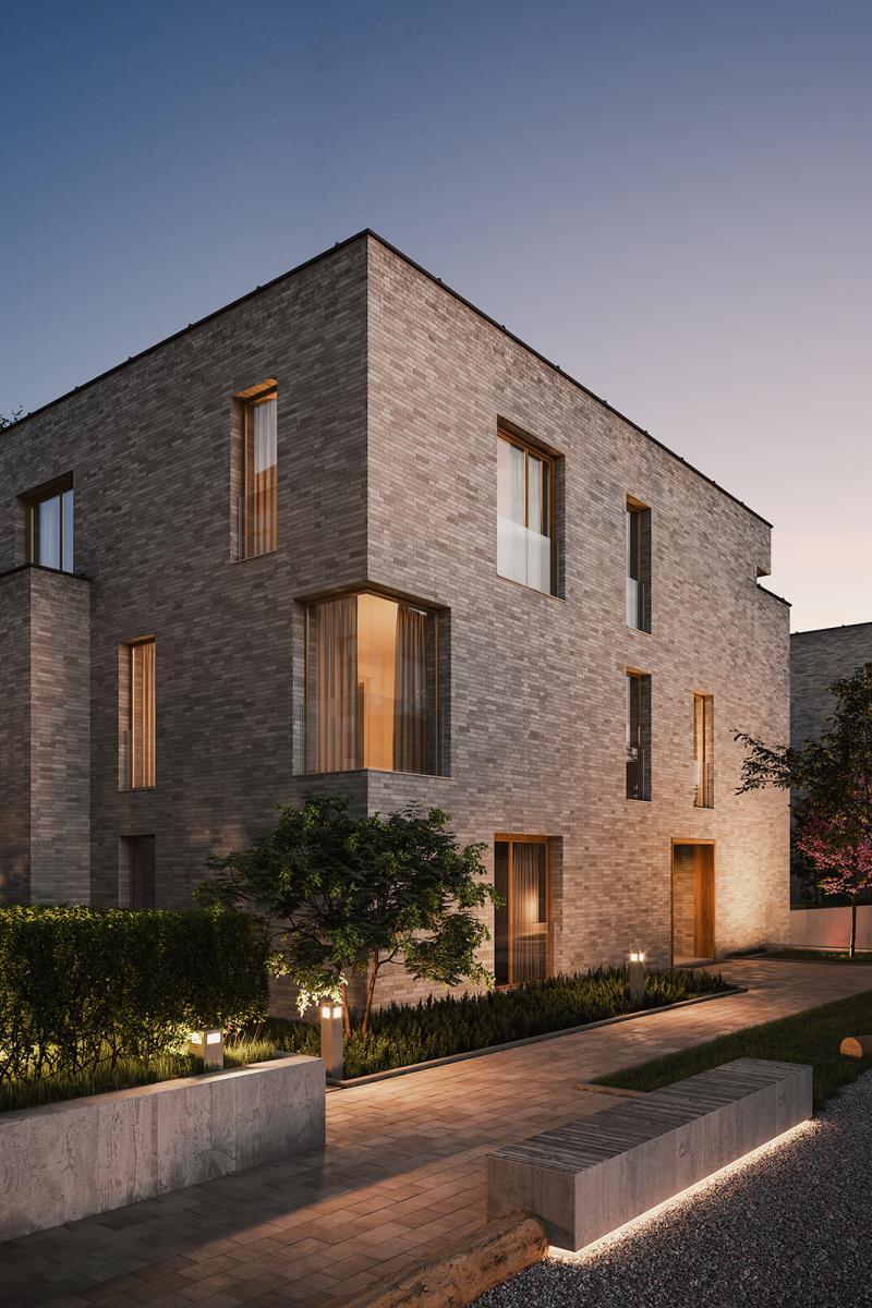 Die Neubauten bestehen jeweils aus zwei Vollgeschossen und fügen sich harmonisch in die Umgebung ein. Ihre zeitlose Architektur greift die Klinkerfassade des alten Schulgebäudes auf, sodass ein stimmiges und selbstbewusstes Ensemble entsteht.