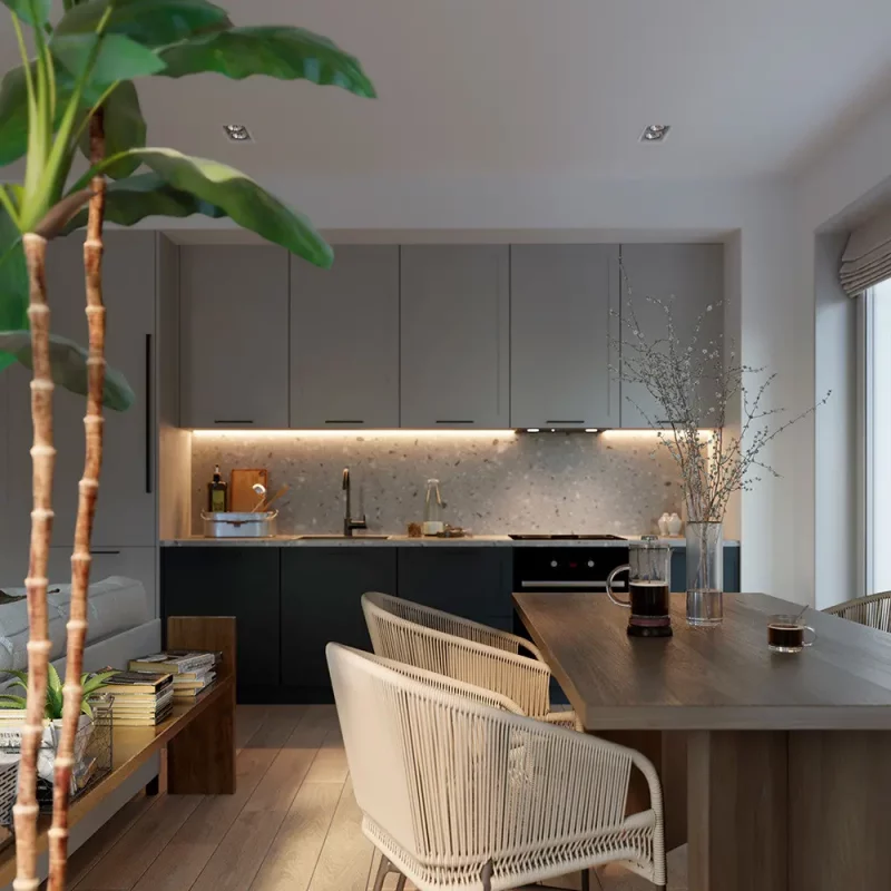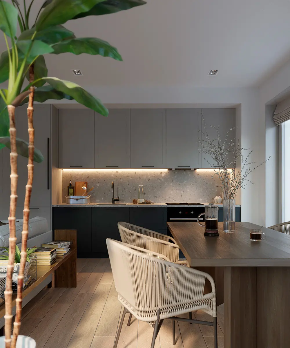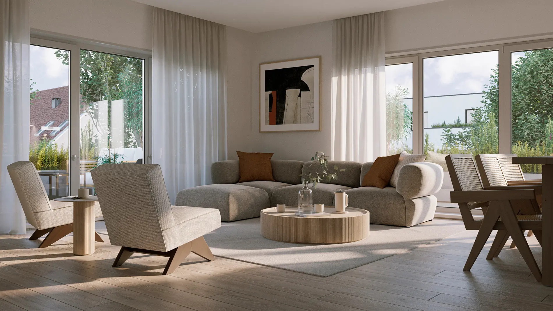 Wir streben nach der perfekten Balance zwischen Ästhetik, Designentfaltung und Funktionalität, wobei lichtdurchflutete Räume und nachhaltige, gesunde Materialien fest in unseren Konzepten und unseren Köpfen verankert sind.