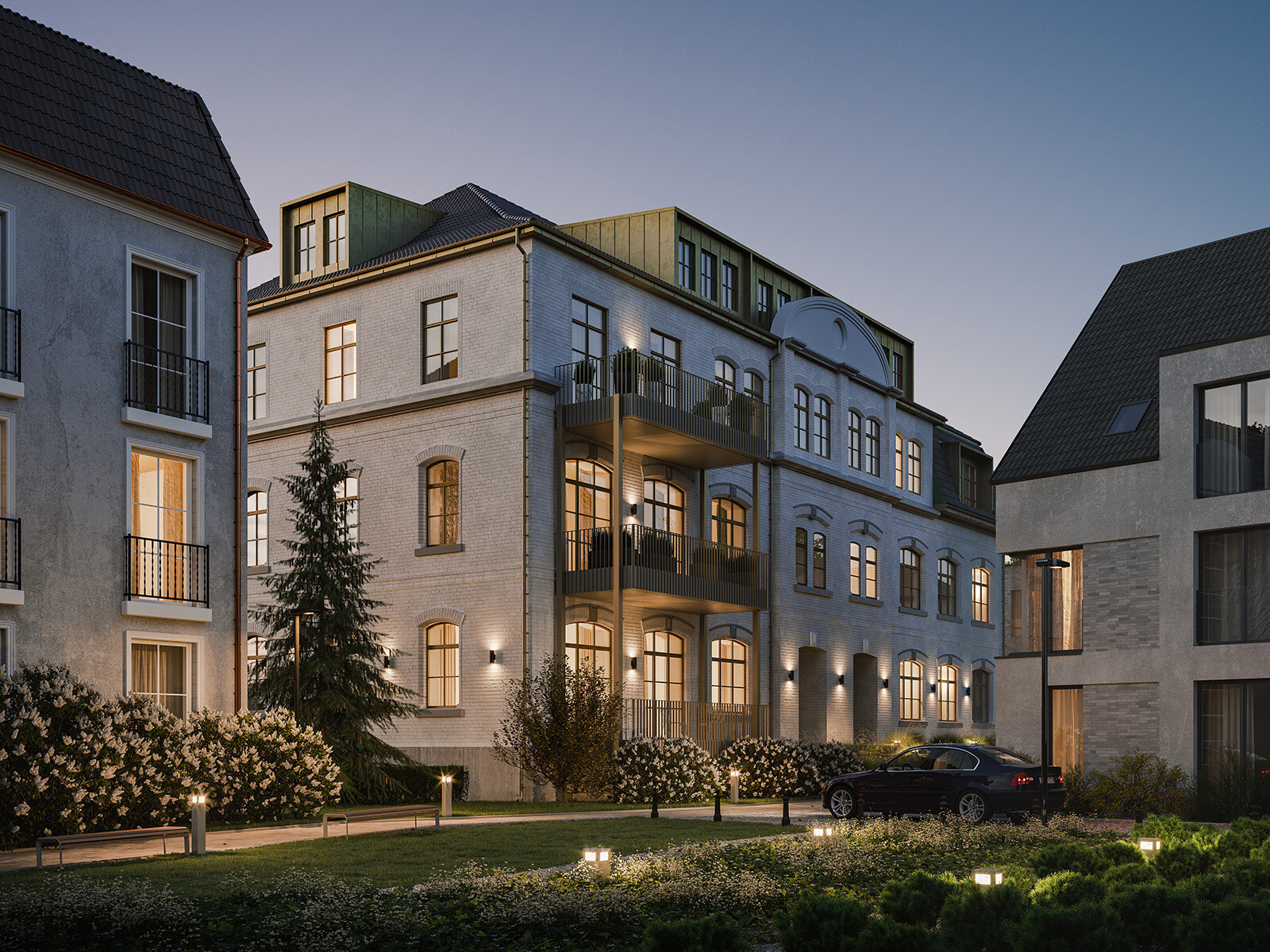 Ein großer Aufzug im neuen Treppenhauskern des Gebäudes erschließt alle Etagen, um eine altersgerechte Nutzung zu ermöglichen. Besonders hervorzuheben sind die ehemaligen Klassenzimmer mit ihren großen Bogenfenstern und hohen Decken, die durch geschickte Raumanordnungen in attraktive Loftwohnungen umgestaltet wurden.