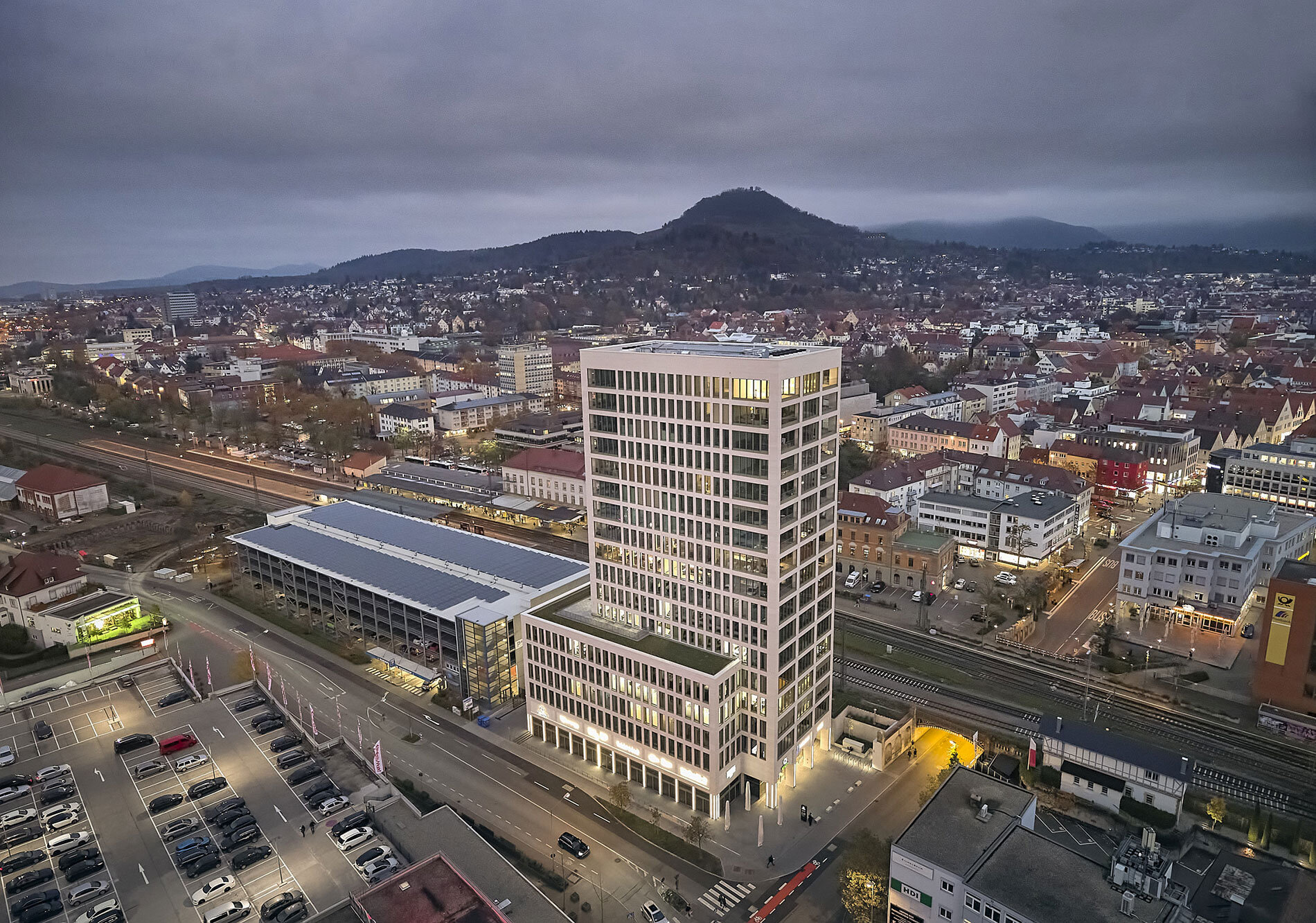 Die Bauweise eines Hochhauses, die eine extrem hohe und damit nachhaltige Verdichtung auf einem sehr kleinen Grundstück zulässt, dient zudem als weithin sichtbare Landmarke am zentral gelegenen Bahnhof in Reutlingen.