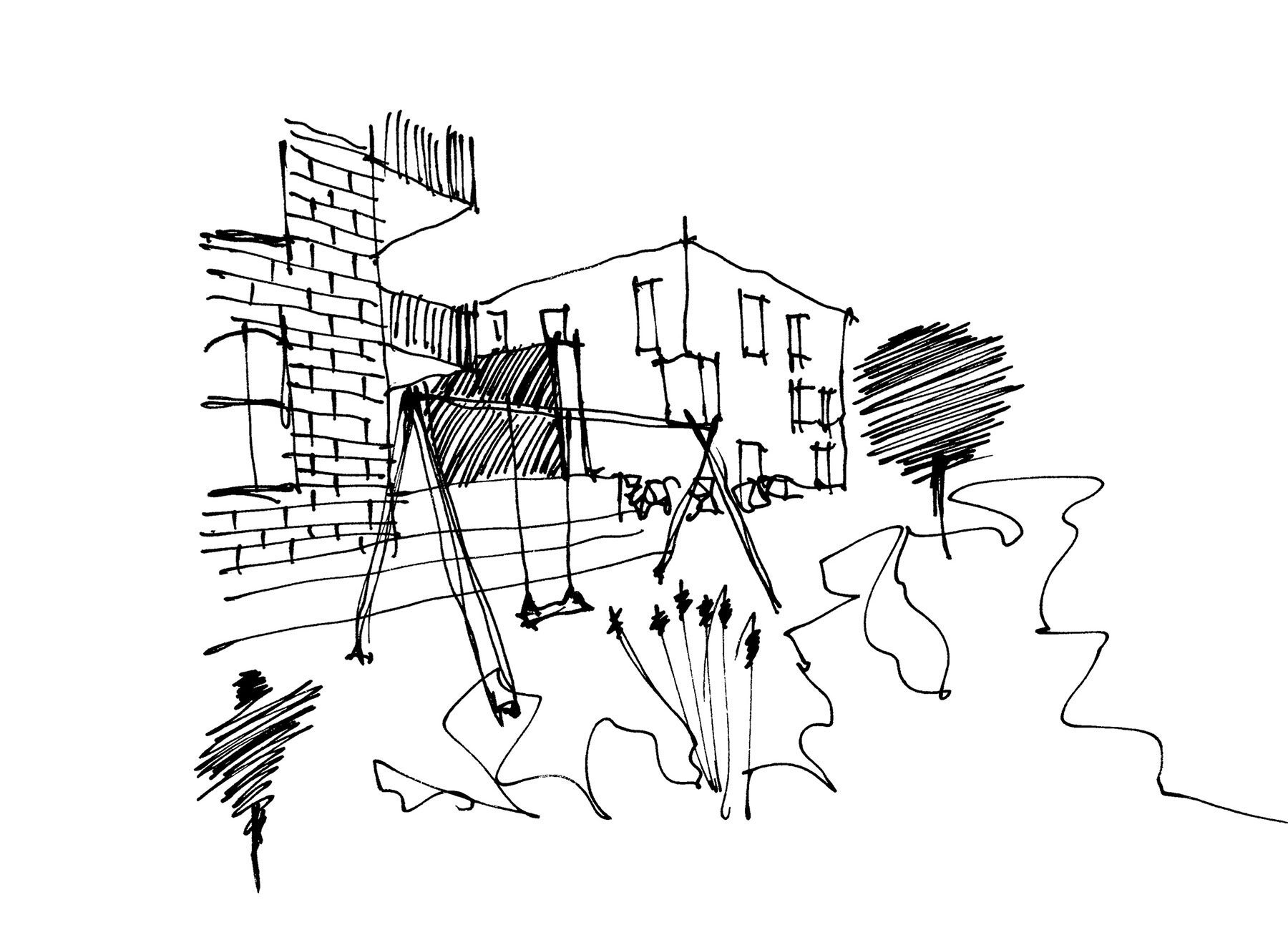 Die Gebäude sind über eine gemeinsame Tiefgarage verbunden, während der Außenbereich größtenteils autofrei bleibt und hochwertige Aufenthalts- und Spielflächen für die Bewohner bietet. Auf die Herstellung von differenzierten Freianlagen wurde besonderes Augenmerk gelegt: Das heißt, dass wir bewusst auf größere, private Gärten auf dem Grundstück verzichten und die Außenanlagen allen Bewohnern zugänglich machen möchten. Wir sehen dabei nicht wie vielerorts üblich, einen zentralen Spielplatz vor, sondern verteilen Spiel-, Freizeit- und qualitätsvolle Verweilangebote auf dem gesamten Grundstück. Dadurch entstehen einzelne Hofsituationen, von denen wir den Namen des neuen Quartiers "Bärenhöfe" ableiten. Somit treten das gesellige sowie vertrauensvolle Miteinander und das Pflegen von Kontakten unter den Nachbarn - und somit unter den verschiedenen Generationen - in den Vordergrund.