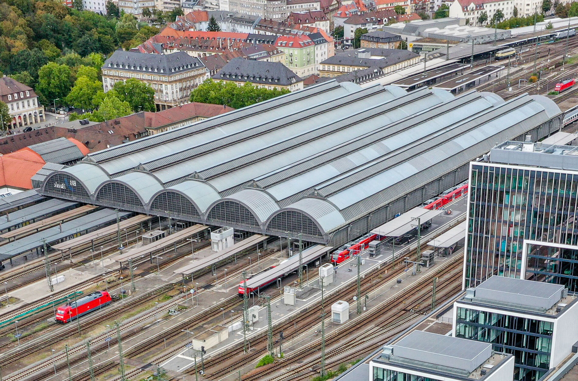 Das denkmalgeschützte Gleishallendach am Karlsruher Hauptbahnhof, entworfen von Paul Bonatz, ist ein bemerkenswertes Beispiel moderner Architektur aus den 1920er Jahren. Mit seinen eleganten, geschwungenen Formen aus Stahl und Glas schafft es eine lichtdurchflutete Atmosphäre.